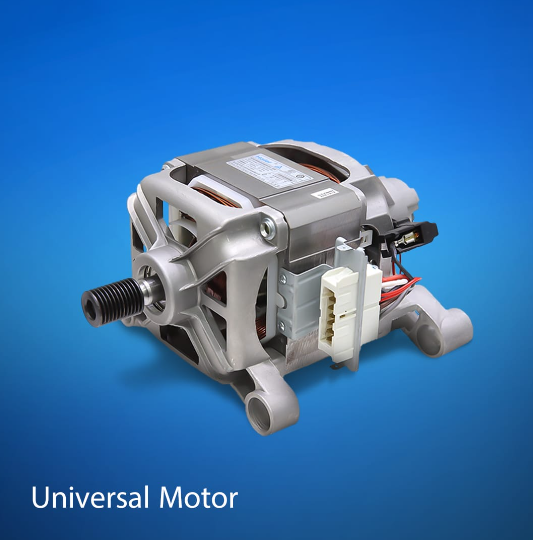 - موتور یونیورسال: این ماشین لباسشویی دارای موتور یونیورسال است که از نوعی موتور القایی است و به دلیل سادگی ساخت، قیمت پایین و استهلاک کم، در بسیاری از ماشینهای لباسشویی مورد استفاده قرار میگیرد.