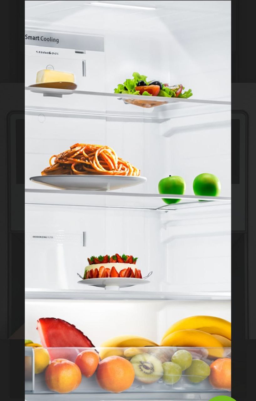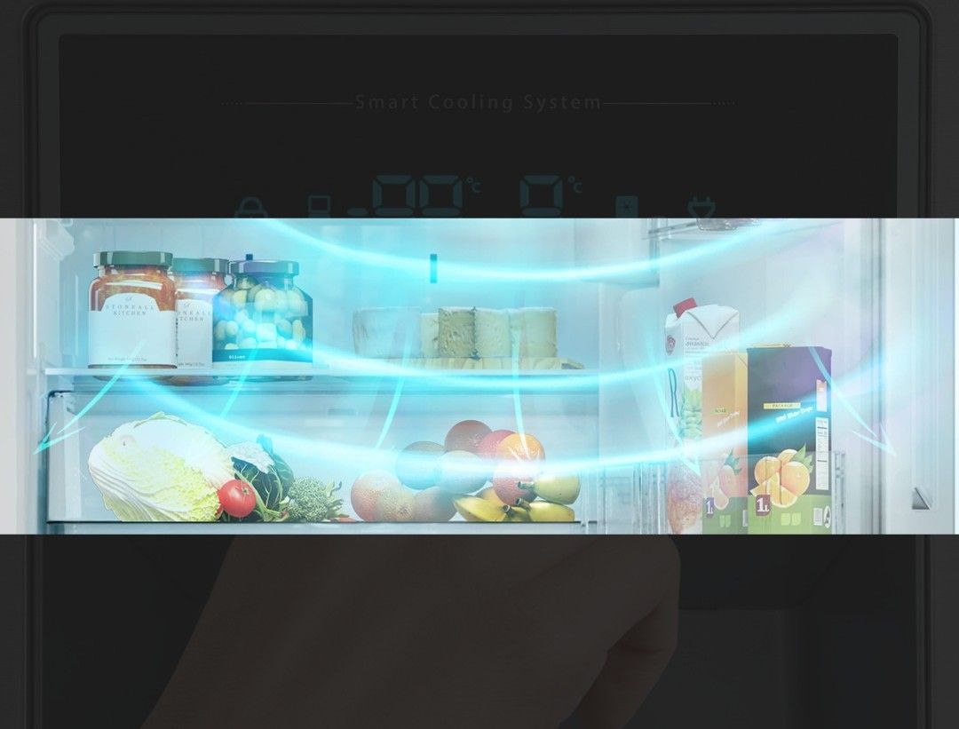 - سامانه مدیریت سرمایش Smart Cooling: با کنترل دمای هوشمند، دما را به صورت دقیق و متناسب با نیازهای مواد غذایی تنظیم میکند، تا حداکثر تازگی و طول عمر طولانیتر را فراهم کند.