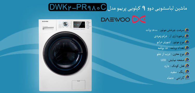 ماشین لباسشویی دوو مدل LM1-980 ظرفیت 9 کیلوگرم
